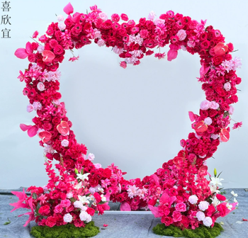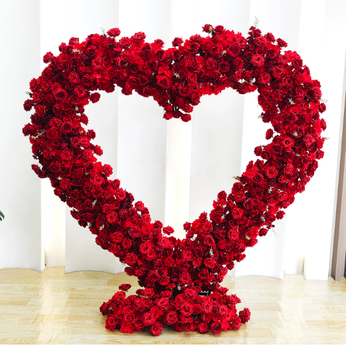 Hecho a mano elegante en forma de corazón Flor de seda roja personalizado boda arco graduación evento decoración flor bola centros de mesa